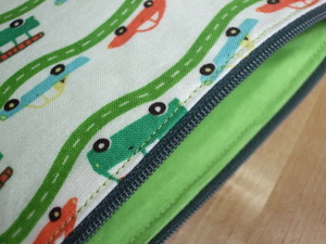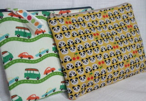 My youngest had a birthday party to go to and I thought the fat quarter I had of My Minds Eye - Wheels - Road in White would be perfect for another pencil case so i made another one. Ages ago I bought various solid colour fat quarters for a yet to be started quilt project. Many of them were not the colour I thought they were so were added to the stash and boy do they come in handy now. The lining on the panda pencil case is black Kona Cotton left over from the halloween bunting and the lining for the car version is moda, can't remember the colour.