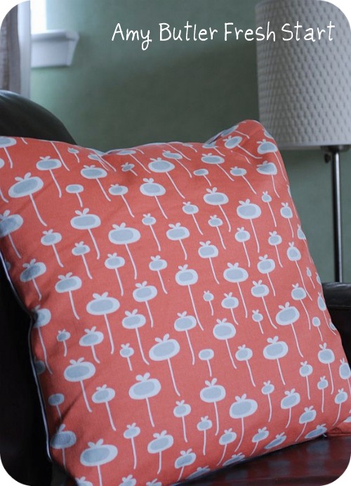 The first is made using some Amy Butler Fresh Start in tangerine which is decor weight fabric so perfect for cushions. I used some klona cotton from Backstitch to make some bias strips to cover piping cord and following the instructions in Sew Everything Workshop the cover went together very smoothly.